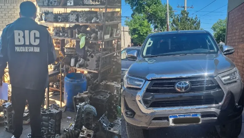 Tras varios de trabajo investigativo, por parte del personal policial de la Brigada de Investigaciones Central logró encontrar y secuestrar una camioneta (melliza con otra), luego de allanar un taller mecánico, en el departamento Chimbas. Pero también se logró el secuestro de varios motores, uno de ellos denunciado como robado.