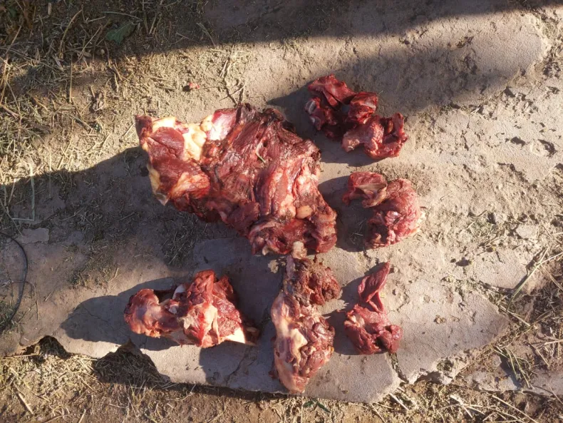 Dos jóvenes de 22 y 26 años se encargaron de faenar un asno en un descampado del departamento Caucete.