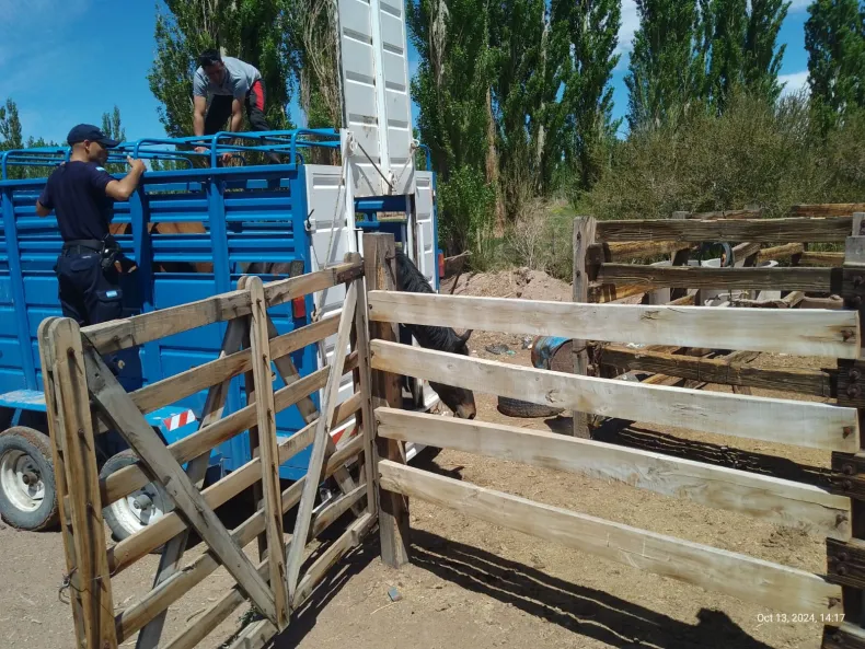 La denuncia hacía mención de que los dos animales estaban en el interior de una finca con plantación de alfalfa, pero que además estaban rompiendo el alambrado y causando daño en el cultivo, sin permiso.