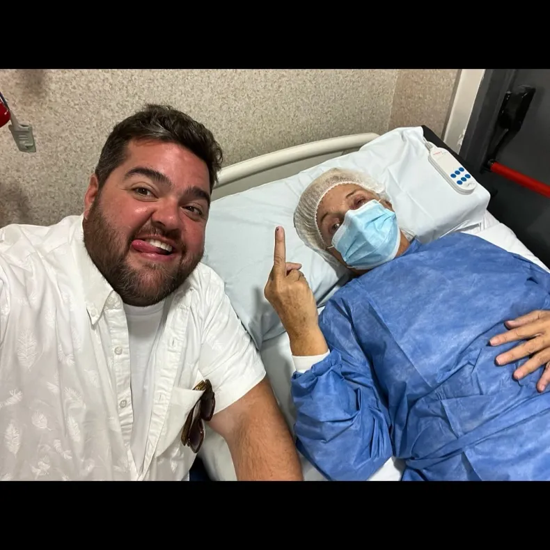 El mensaje está acompañado por una foto en la que puede verse al popular artista junto a su mamá en una clínica.