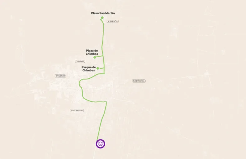 Línea Verde (Norte): Saldrá desde Chimbas (Parque y Plaza de Chimbas) y desde la Plaza de Albardón.