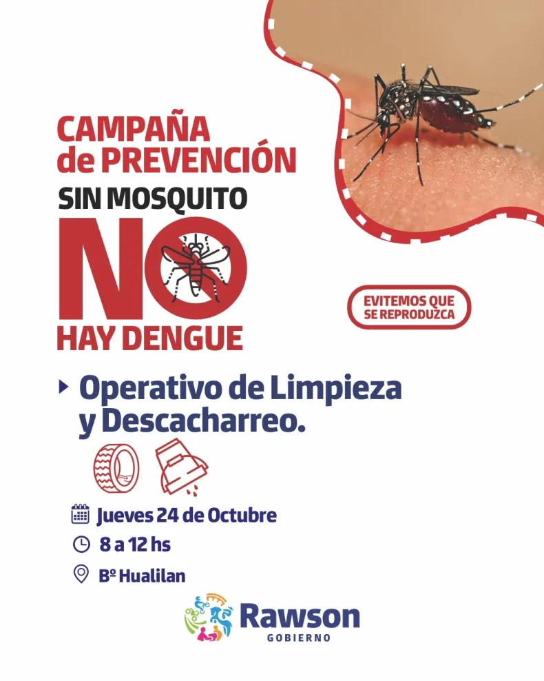 La Municipalidad de Rawson refuerza su campaña de prevención "Sin mosquito no hay dengue", con el objetivo de combatir la proliferación del mosquito transmisor de esta enfermedad. Durante esta semana, las acciones de concientización y limpieza se expandirán, esta semana llegará a una zona clave del departamento.