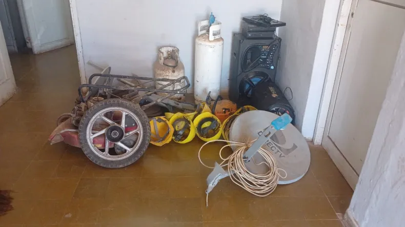 Este procedimiento no arrojó resultados positivos respecto a los bienes robados, pero se encontraron varios efectos, incluyendo, electrónicos (parlantes, DVD, decodificador, celulares), herramientas (motosierra, cortadora de césped), artículos de seguridad (casco, anteojo) y otros como (garrafas, rueda, y una moto, detallaron las fuentes.