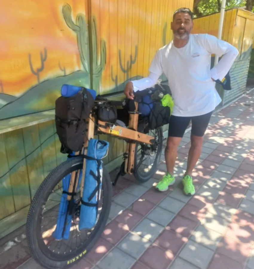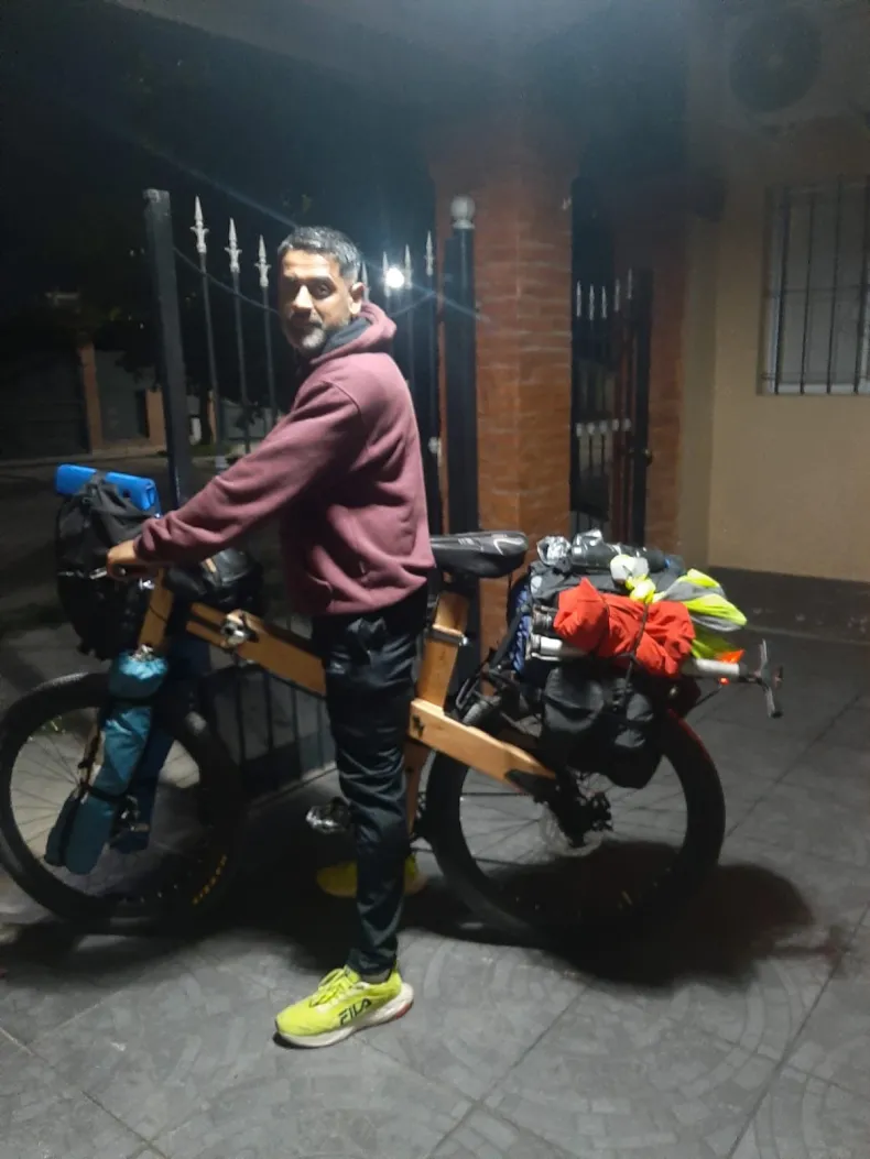 Un sanjuanino recorre el norte de Argentina en una bicicleta de madera hecha por él mismo
