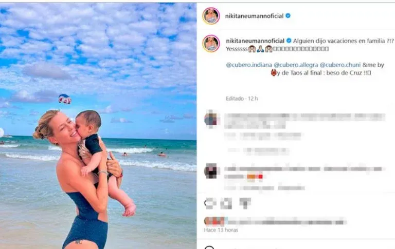 La bella modelo argentina Nicole Neumann compartió por primera vez la imagen de su bebé durante unas vacaciones familiares en México junto a su pareja y sus hijas.