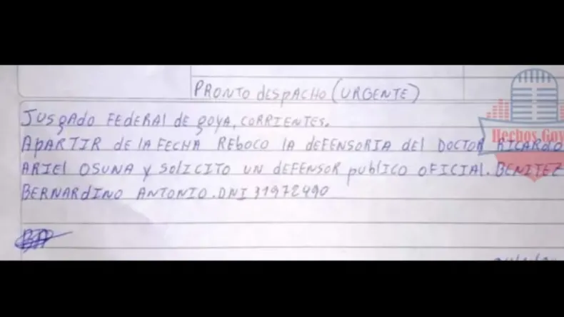 En ese sentido, Antonio Benítez presentó un escrito ante Cristina Pozzer Penzo donde revocó la defensoría del doctor Ricardo Osuna. A su vez, solicitó un defensor público oficial.