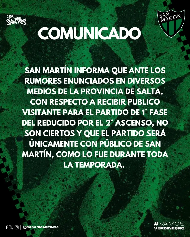Lo que si está definido es que el partido se jugará en Concepción y sin público visitante echando por tierra el rumor que se generó en Salta de que podían llegar los hinchas del Albo.
