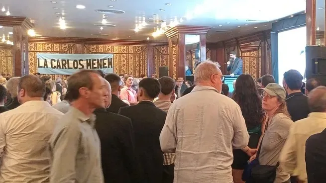 La ceremonia se realizó en un abarrotado salón de un hotel ubicado en las avenidas 9 de Julio y Córdoba, con las presencias de algunos referentes del menemismo como Alberto Kohan, quien circulaba con bastón, y de La libertad Avanza, como el senador provincial Sebastián Pareja, señalado como "padrino" de La Carlos Menem y uno de los oradores de la ceremonia.