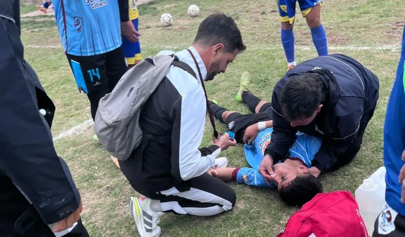 Ese golpe dejó incosciente a Paez y pasaronvarios minutos para que reaccionara. Fue trasladado al Hopital de Pocito para una mejor atención.