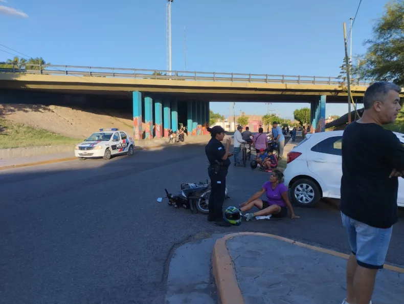 El siniestro vial dejó a una mujer con una herida en su pierna. Fue rápidamente auxiliada y trasladada al hospital Rawson.