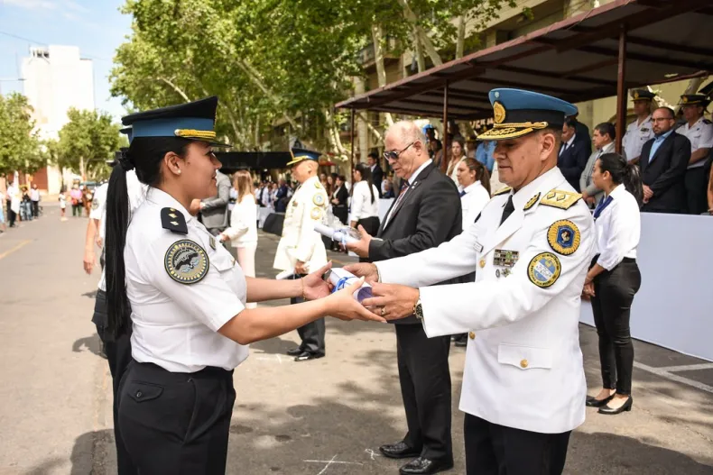 El tradicional acto conmemorativo y desfile tuvo lugar frente a la emblemática plaza 25 de Mayo, donde la Agencia Regional Federal Cuyo de la Policía Federal Argentina (PFA) llevó a cabo la ceremonia en honor a los 203 años de la institución.