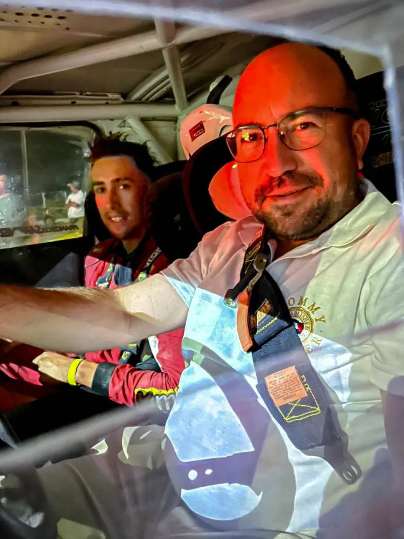 Si bien no estaba en el programa, el intendente del departamento Rivadavia tuvo la posibilidad de subir a uno de los autos del rally y poder realizar varios giros en el mítico circuito sanjuanino, siempre cargado de historia automovilística.