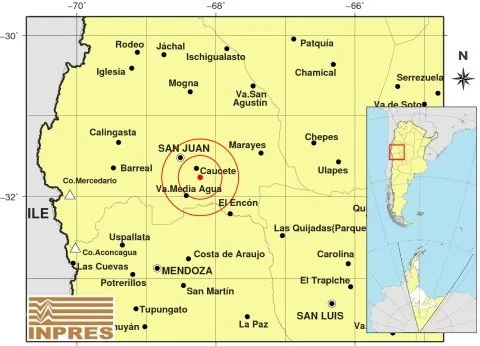Ocurrió a las 6:50hs. a con epicentro ubicado a 30 kilómetros al noreste de Media Agua, a 38 kilómetros al sureste de la capital sanjuanina y a 58 kilómetros al oeste de Bermejo.