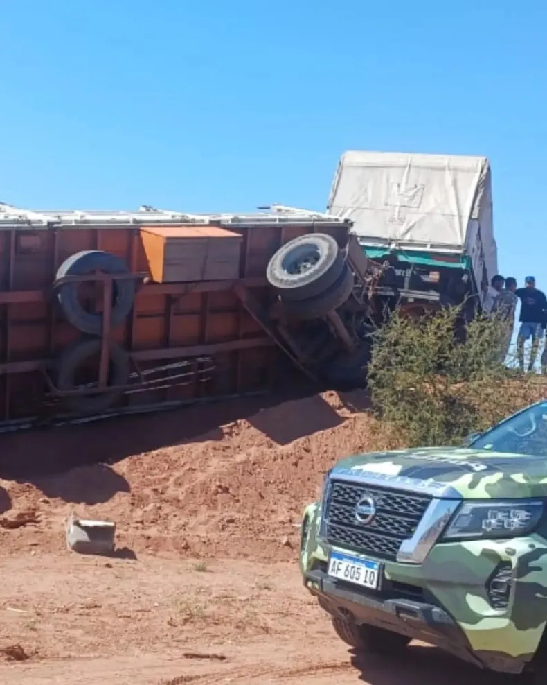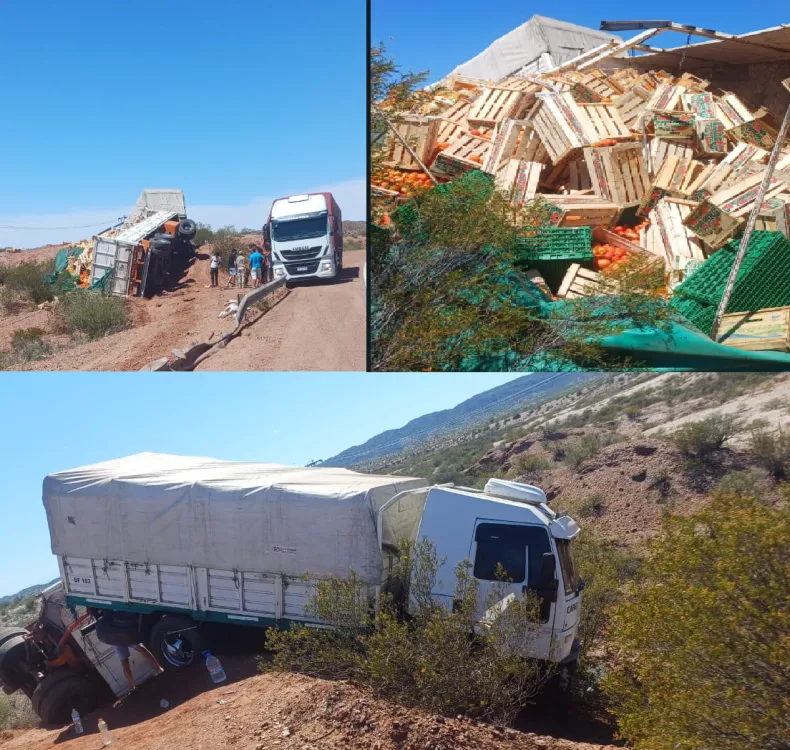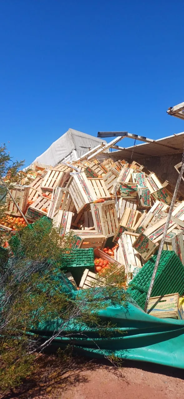 Este jueves 14 de noviembre, un camión Ford Cargo con acoplado que transportaba cajones de tomates volcó en la Ruta 141, a la altura del kilómetro 120, en la localidad de Marayes, Caucete. El incidente ocurrió cerca de las 11 de la mañana y, según el Ministerio Público Fiscal, el vehículo se dirigía hacia Mendoza desde La Rioja.