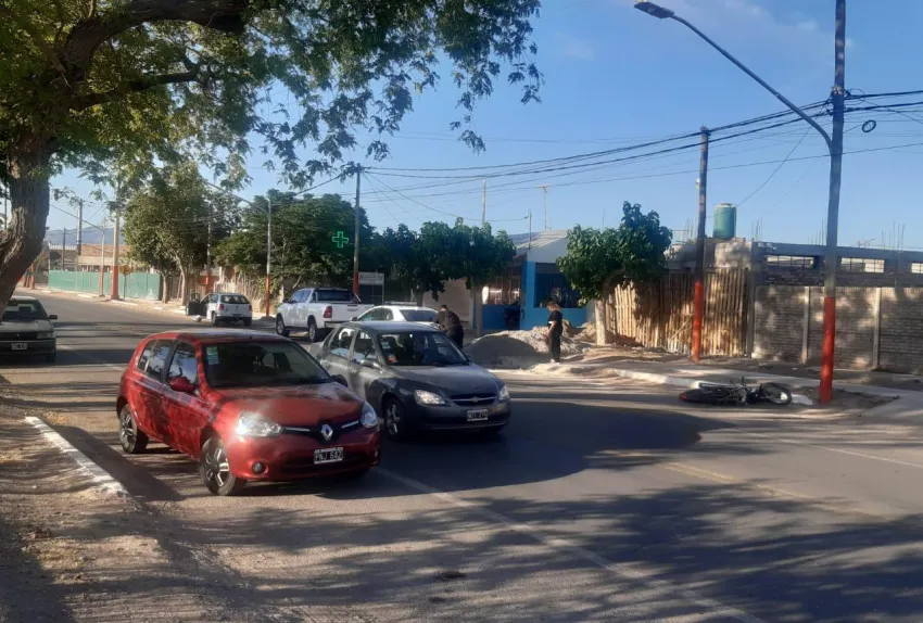 Este jueves, aproximadamente a las 18:00 hs., se registró un accidente de tránsito en la calle Salta, en Chimbas, antes de la intersección con Teresa de Calcuta. El siniestro involucró un automóvil Renault Clio, conducido por Virginia Pontoriero, y una motocicleta Corven de 150 cc, guiada por Rodrigo Garramuño. Ambos vehículos transitaban en dirección sur cuando ocurrió la colisión.