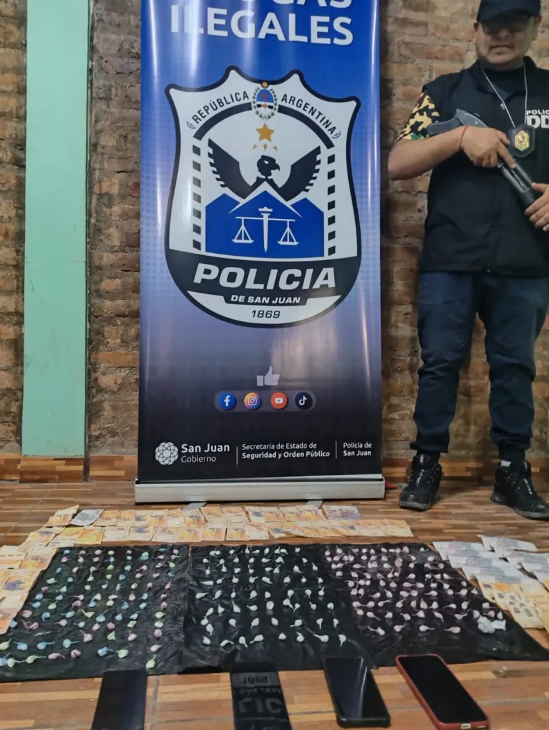 Este miércoles, el personal del Departamento Drogas Ilegales de la Policía de San Juan, tras innumerables investigaciones llevadas a cabo y con la coordinación de la Fiscalía Federal a cargo del Dr. Francisco Maldonado, con el fin de anular toda actividad ilícita relacionadas con el narcotráfico, llevaron a cabo un allanamiento en el Barrio Cipolletti, Departamento Chimbas. El resultado del allanamiento fue tremendo, ya que encontraron múltiples drogas, dinero y celulares.