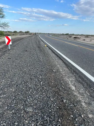 Durante la inspección ocular, se constató una huella de derrape en la banquina, de aproximadamente 133 metros de longitud. En principio, se descarta la intervención de terceros en el hecho.
