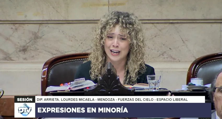 La sanjuanina Lourdes Arrieta, diputada libertaria por Mendoza, lloró luego de caerse la sesión en la Cámara Baja en la que no dio quórum y en donde se iba a tratar el proyecto de Ficha Limpia.