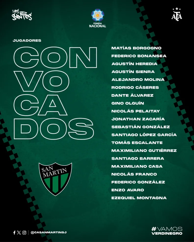 Entre los convocados aparece el sanjuanino Santiago Barrera y corre con chance de tener minutos en el segundo tiempo por ser delantero y ante la necesidad de poder conseguir el triunfo.