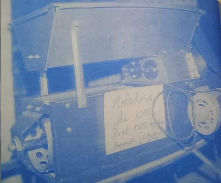 "Las maquinarias existentes en el mercado -nos contaba- son para la elaboración de muchos millones de kilos de uva y de litros, miles de kilos hora y son máquinas muy caras". En cambio, la máquina que él había diseñado y construido era para hacer vino en pequeña escala, "para un nivel pequeño de producción", nos aclaraba, y se adapta mejor a las necesidades de los pequeños y medianos productores.