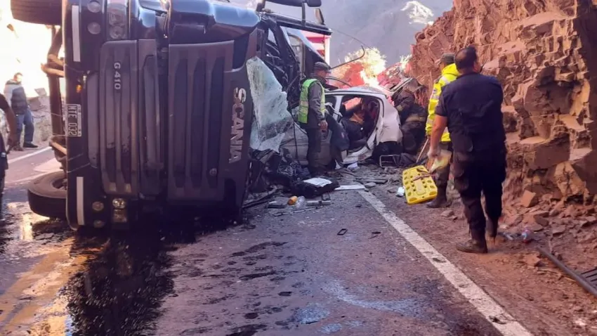 Un trágico accidente ocurrió en el camino a Chile por Mendoza, en la zona de Uspallata. Un camión volcó y aplastó a un auto. EL camionero falleció y los cinco integrantes de la familia que transitaban en el vehículo resultaron heridos.