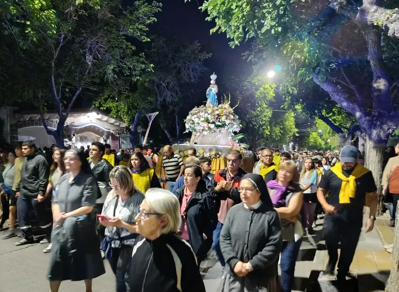 La jornada comenzó a las 5:00 de la mañana, cuando la imagen de la Virgen inició su recorrido desde la intersección de calles San Luis y Tucumán. Acompañada por una multitud de devotos, la procesión culminó en el Santuario ubicado frente a la Plaza Juan Jufré.
