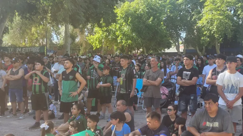 Para los que no pudieron viajar a Córdoba y necesitaban sentirse como en la cancha, la secretaria de Deporte y por pedido del gobernador Marcelo Orrego se colocó una pantalla gigante para seguir el partido.