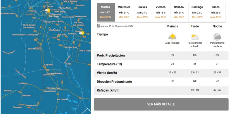 El Servicio Meteorológico Nacional (SMN) emitió un aviso para San Juan por la llegada de viento del sector noreste, que se espera impacte durante la tarde y noche de este martes. Según la información proporcionada en su página web, el viento alcanzará velocidades de hasta 50 km/h.