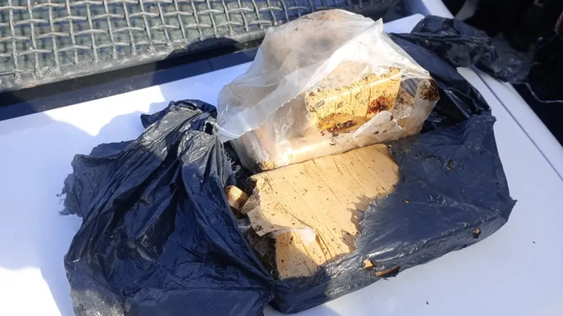 Durante el procedimiento, los policías encontraron una bolsa de color gris que contenía tres paquetes de forma rectangular con una sustancia verde esmeralda, presumiblemente marihuana.
