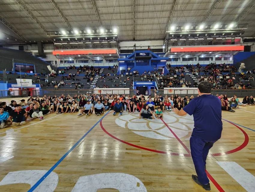 En el Estadio Aldo Cantoni, el Ministerio de Familia y Desarrollo Humano llevó a cabo una jornada de capacitación destinada al personal que participará en las Colonias de Verano 2025 y en los Jardines de Cosecha. El evento reunió a más de 800 asistentes, quienes recibieron formación impartida por profesionales de distintas direcciones del ministerio.