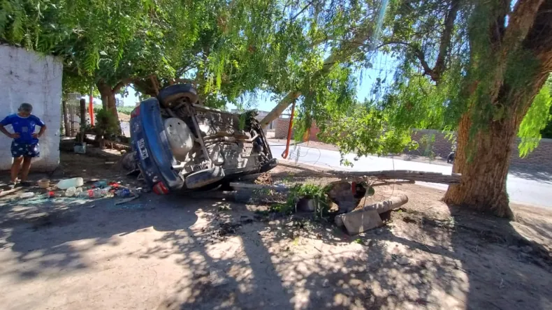 Un tremendo vuelco se registró en la mañana de hoy, en calle Rodríguez, en el departamento Chimbas, cuando una mujer identificada por la Policía como Susana Quintana (44), conducía un Chevrolet Corsa dominio EIW-976, que lo hacía con su hija Zulma Quintana (26).