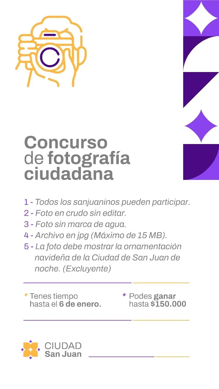 El plazo para participar finaliza el 6 de enero de 2025 y los interesados pueden subir sus imágenes a través de la página oficial de la municipalidad: https://municipiosanjuan.gob.ar/