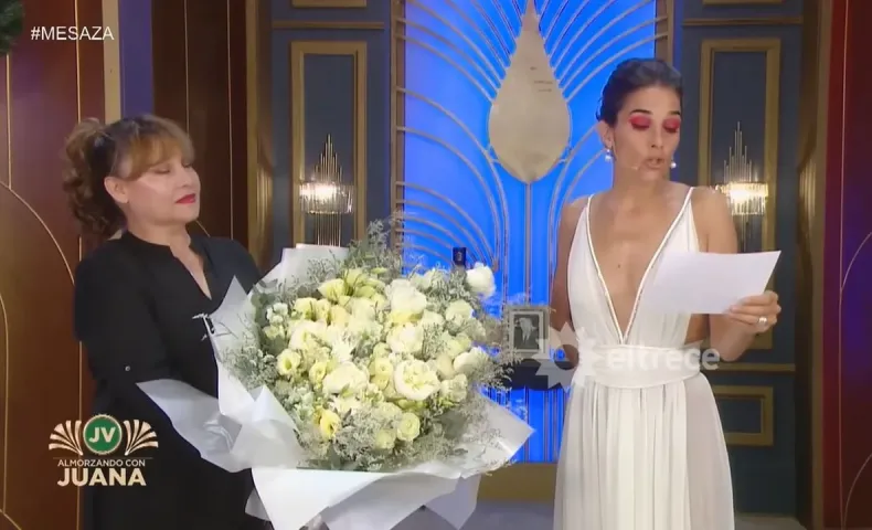 A modo de disculpa por su ausencia, Colapinto envió un ramo de rosas a Juana Viale acompañado de una emotiva carta. Durante el programa, la conductora mostró el regalo y leyó las palabras que le dedicó el piloto. "Juana, me hubiese encantado estar en la mesa y compartir con todos ustedes, pero mis compromisos me lo impiden. Les mando un gran abrazo para todos y un cariñoso saludo para vos. Ojalá nos veamos en 2025. Feliz año para todos ustedes", escribió Franco.