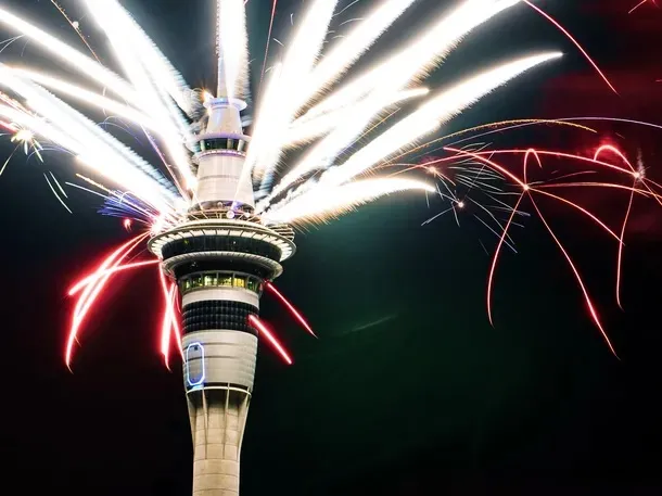 La Sky Tower, uno de los principales símbolos arquitectónicos de la ciudad, fue el escenario de un deslumbrante show pirotécnico que iluminó el cielo nocturno. Los colores brillantes y los destellos sincronizados con música crearon un ambiente mágico que emocionó tanto a locales como a turistas.