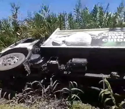 Un camión recolector de residuos, término volcado de costado en el interior de un canal que corre paralelo a calle 5, al parecer por un error de cálculo. Al parecer, el conductor de este transporte, identificado por la Policía como Fernando García, habría intentado darle más espacio a otro de los tantos camiones, que venían de frente en sentido contrario y que tenían como destino el basurero, ubicada en la zona de calle 5 y Pellegrini, en el departamento Rivadavia. La otra versión da cuenta de que el camión se quedó muy cerca del canal y que cedió el terreno y se fue de costado