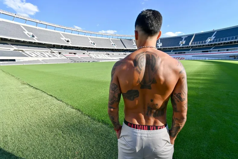 El Capitán está de vuelta. Enzo Pérez firmó con River, el club lo oficializó en sus redes sociales y ya le tomaron fotos mostrando su espalda tatuada con las siglas de la institución de Núñez.