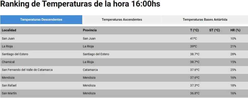 La Rioja y Santiagodel Estero también experimentaron calor intenso, pero sus temperaturas máximas no llegaron a los 40°C, quedando detrás de San Juan en el ranking de las más calurosas.