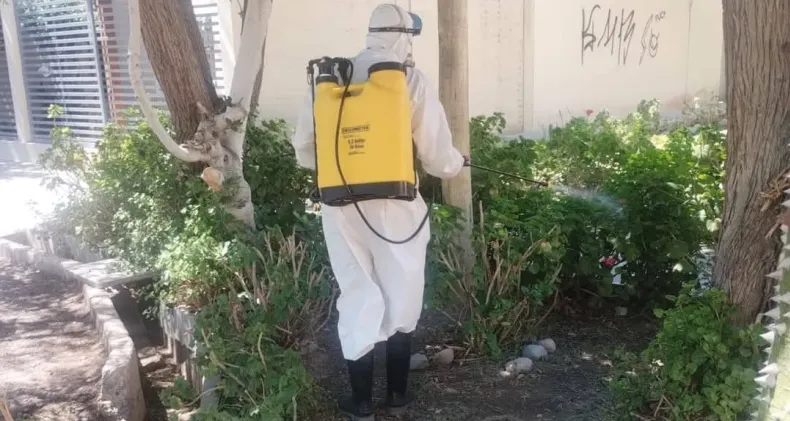 La Dirección de Salud, encargadas de llevar adelante las tareas de fumigación, utilizando técnicas adecuadas para proteger a las familias del departamento.