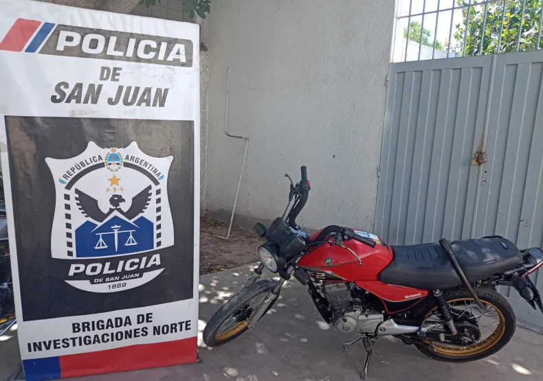Personal de la Brigada de Investigaciones Norte D-5 logró secuestrar un motovehículo con pedido de captura por robo agravado en la provincia de Buenos Aires. El operativo se realizó en la intersección de calles Independencia y 29 de Agosto, en Albardón, tras identificar un vehículo sospechoso.