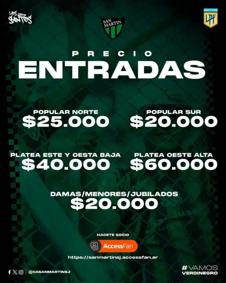 San Martín de San Juan últimos detalles para su regreso a la élite del fútbol argentino. Este viernes a las 21:30, el Verdinegro recibirá a Atlético Tucumán en el arranque de la Liga Profesional, y los hinchas ya pueden asegurar un lugar para el emocionante debut.