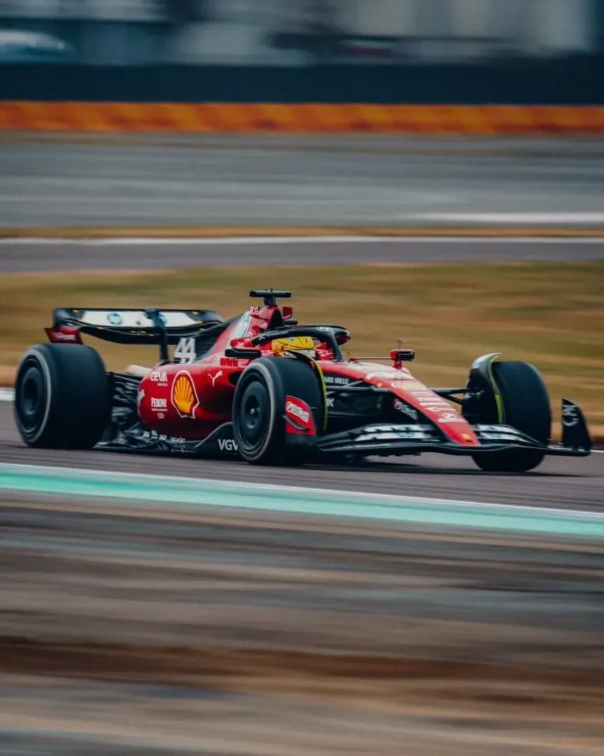 Bajo una intensa niebla, el siete veces campeón del mundo salió a la pista vestido completamente de rojo y con un casco N°44 amarillo, el mismo color que usó en su estreno en la F1 con McLaren. Además, está inspirado en Ayrton Senna, uno de sus grandes ídolos.