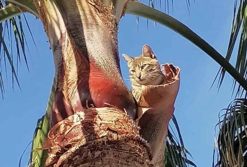 Pide ayuda para rescatar a un gato atrapado en una palmera desde hace 6 días