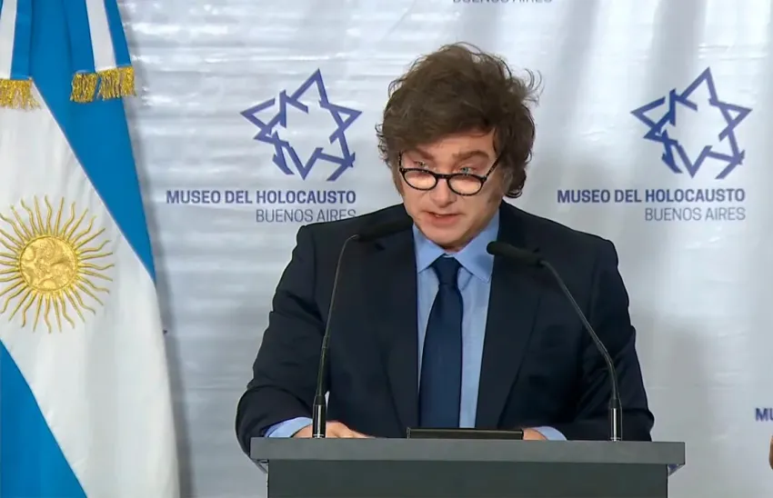 "Ojo con los que, de forma banal, revolean falsas acusaciones de ‘nazi’, contra quienes no piensan como ellos, tal como lo hicieron expresiones de izquierda con mi amigo Elon Musk, que es un defensor intachable del Estado de Israel", dijo Milei durante su exposición en el acto por el Día Internacional del Holocausto.