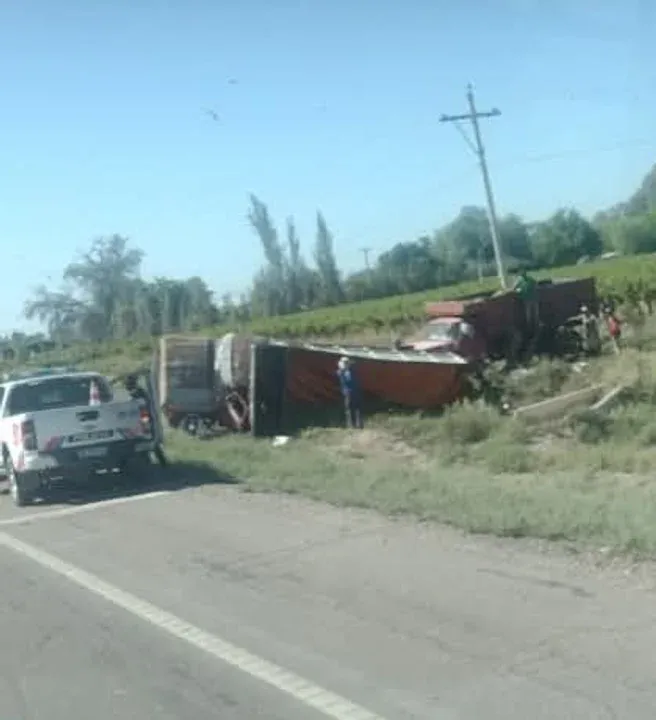 El hecho ocurrió pasadas las 10.00, cuando un camión, con la carga completa, transitaba por ruta Nacional 20 con destino a una bodega de la zona y que por motivo que se investigan, el conductor (no fue identificado) perdió el control del rodado y se fue sobre su costado para terminar volcando.