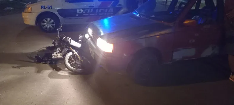 Un nuevo accidente de tránsito que involucró a una moto y un vehículo, se produjo en la noche en el interior del barrio Santa María, en el departamento Chimbas, cuando una motocicleta y un automóvil colisionaron en la intersección de Bulevar Santa María y calle Proyectada.