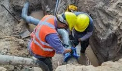 Personal de OSSE trabaja en el lugar para que los vecinos del barrio Valle Grande y adyacentes, vuelvan a contar con el servicio de agua potable.