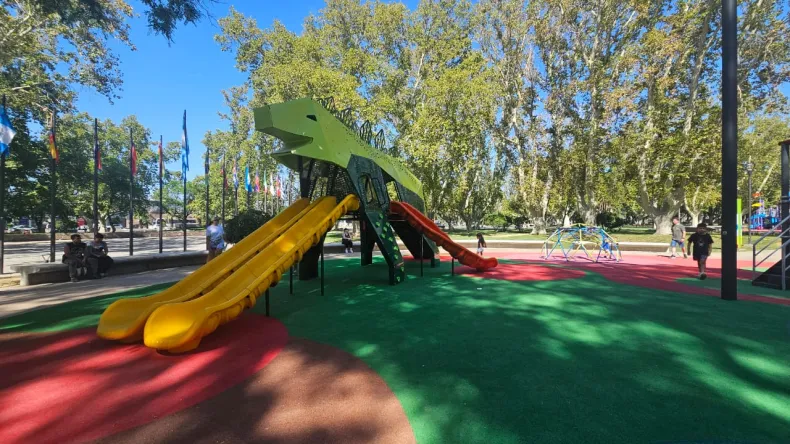 Tras ser estrenado, este jueves el nuevo sector de juegos del Parque de Mayo fue aprovechado por los niños que llegaron junto a sus padres.
