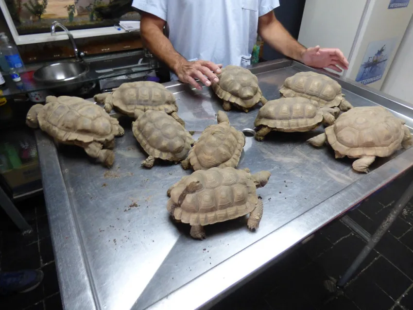 Un vecino de la ciudad de San Juan tomó la decisión de entregar voluntariamente nueve tortugas terrestres (Chelonoidis chilensis), seis machos y tres hembras además de tres huevos a la Secretaría de Ambiente.