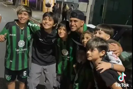 El jugador de San Martín llegó al club en la noche del miércoles para reunirse con sus compañeros e ir a la concentración y fue ovacionado y requerido por los hinchas que estaban en la puerta del club