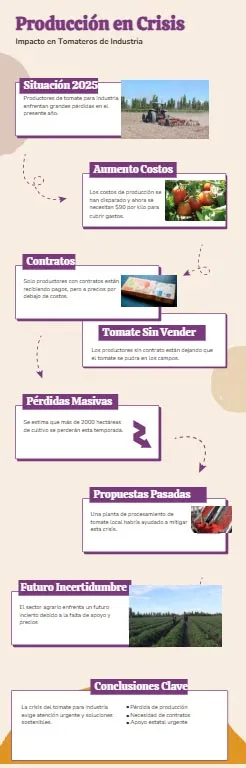 "Es un año para el olvido", dijo un importante productor de tomate para industria de San Juan. Las industrias solo están comprando el tomate que tienen bajo contrato e incluso hay productores a los que les han puesto condicionamientos. A los productores que no tienen acuerdo con las empresas se les está perdiendo en el campo